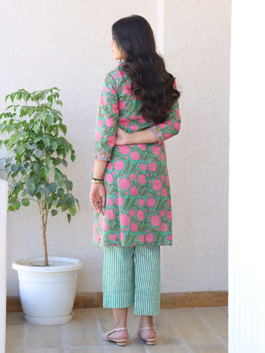 Pink Chrysanthemum A-Line Kurta Set with Side Slits