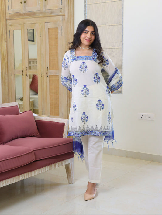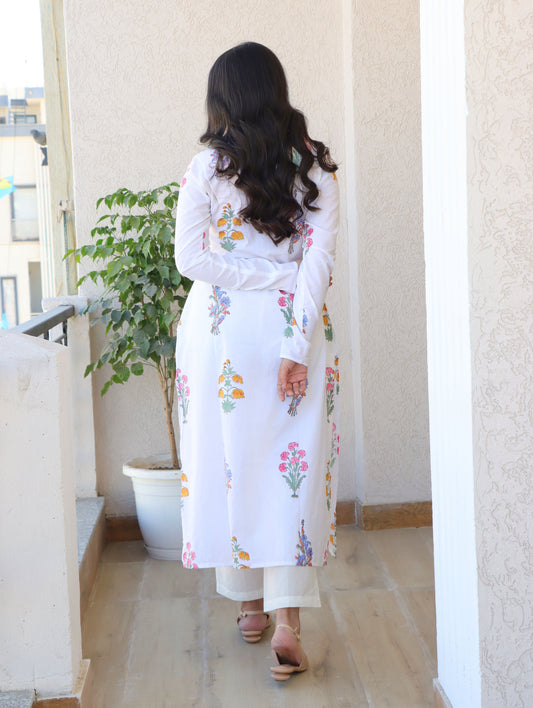 Garden of Flowers A-Line Kurta Set with Side Slits