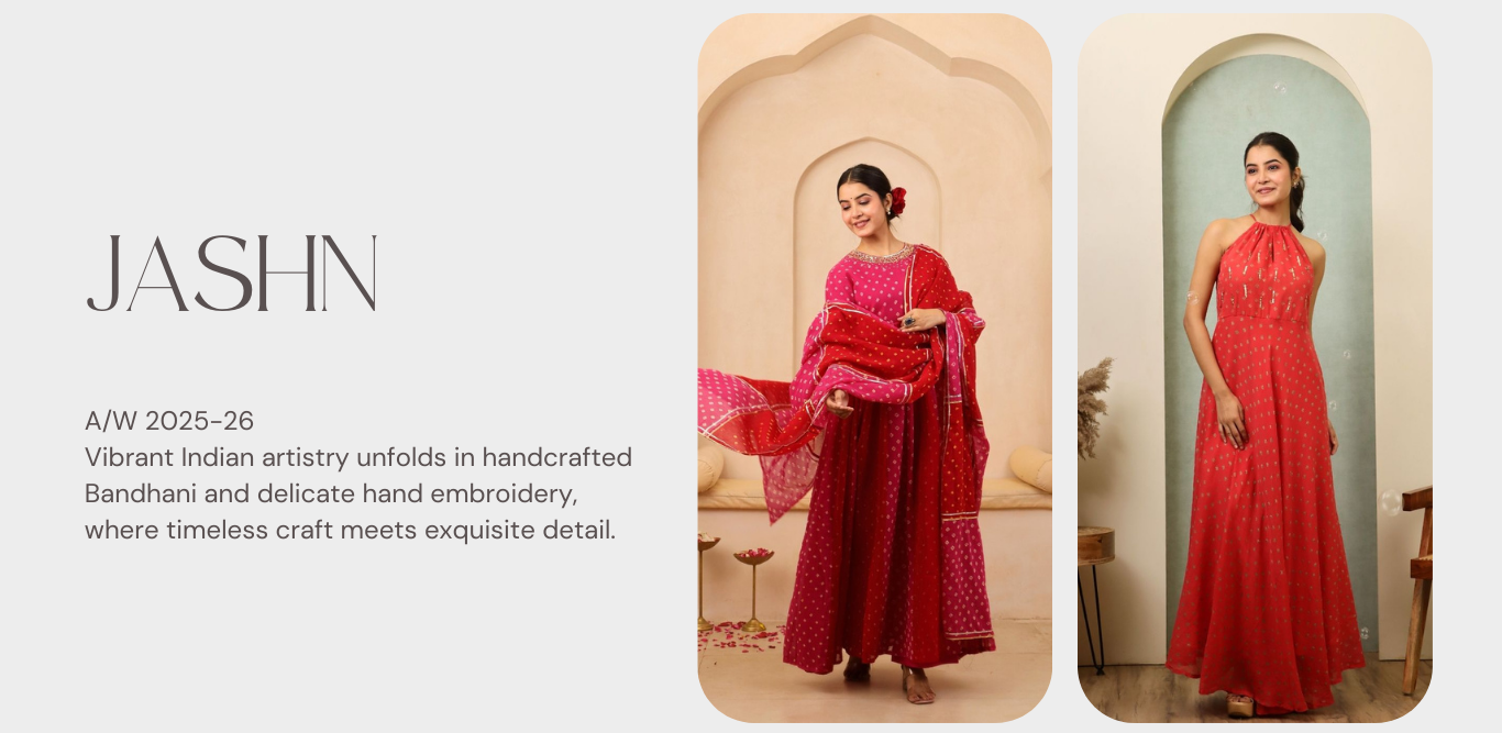 Ishira - Crimson Bandhani Hand Embroidered Anarkali Mulmul Suit - Set of 3
